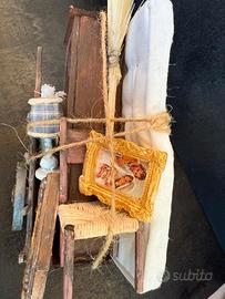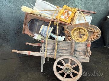 Carretto del trasloco (4 maggio) in legno di balsa con accessori realizzati a mano . Per statue 14cm-16cm (h 17cm, lung. 19cm, prof. 10cm). Pezzo unico di artigianato realizzato a mano