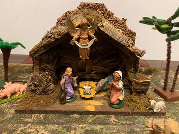 Presepe Completo di Casetta , alberi e statuine , tutto quello che riguarda il presepe. Altezza statuine 10 cm e casetta alta 22 cm, compresa anche la carta per fare le montagne e il prato tutto quello che si vede nelle foto.