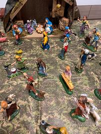 Presepe completo di Casetta, Statuine e alberello , altezza statuine 9 cm altezza casetta 23 cm, compresa anche la carta per fare le montagne e il prato tutto quello che si vede nelle foto.
