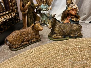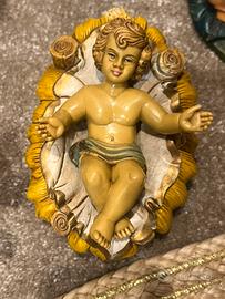 Presepe Euromarchi serie da 30cm Bambinello con culla (la culla presenta dei segni) Giuseppe Maria Angelo (manca il cerchietto tra le ali per appenderlo) Bue Asinello Il prezzo tiene conto dei difetti elencati