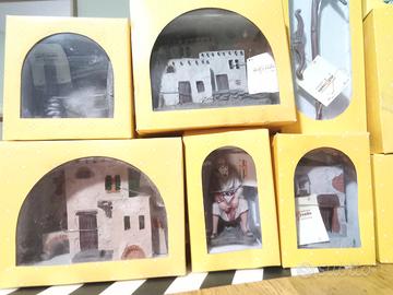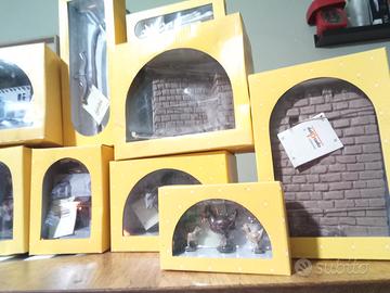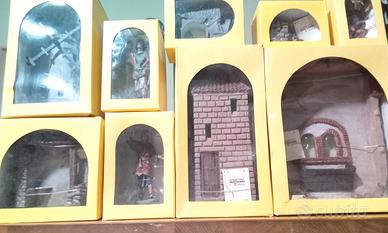 24 elementi da collezione tra personaggi e edifici che formano Il presepe, edizione Del Prado anni 90. Elementi mai utilizzati e ancora imballati nella loro scatola originale.