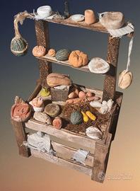 Bellissimo banco in legno realizzato e dipinto a mano di frutta salumi formaggi. Adatto per personaggi da 12/15cm. Misure in foto.