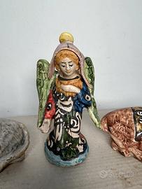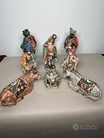 Presepe vintage, in ceramica di Caltagirone Sicilia, presepe composto da 9 personaggi,