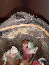 Nella grotta sono presenti la Sacra Famiglia, il bue e l'asinello, due caprette, un angelo, un pastore e i Re Magi.