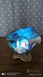 Presepe su ostrica grande costruita interamente a mano alimentato con luci RGB con alimentatore da 5V. Spedizione esclusa.
