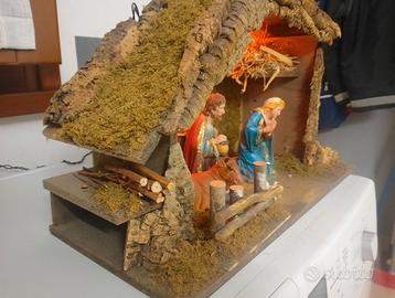 Vendo per inutilizzo, presepe in legno con tutto quello che vedete in foto, statue da 15 centimetri e luci. Misure 50x25x35 di altezza.