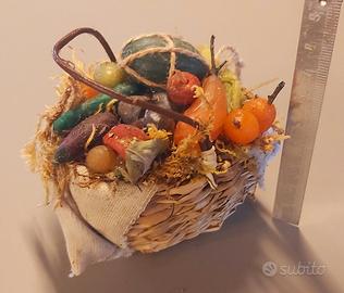 Presepe napoletano. Bellissimo cesto di frutta e verdura in cera realizzati a mano. Adatto per pastori da 35/40cm. Misure in foto.