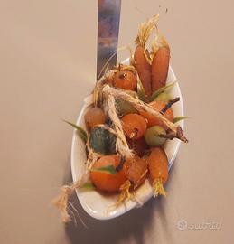 Presepe Napoletano. Bellissima composizione di frutta e verdura in cera realizzata a mano.