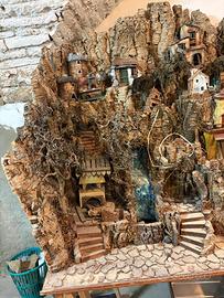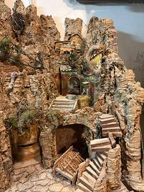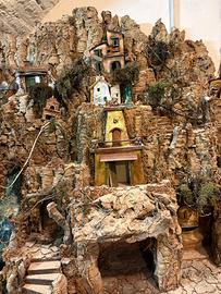 Bellissimo presepe Napoletano Artigianale fatto a mano dal maestro di arte presepiale Cesare Romano, famoso ed importante artista di Napoli. Il presepio presenta una serie di addobbi che si accendono (ruscello d’acqua e forno del pane). Stile classico del paesaggio di Betlemme, il presepe risale all’inizio anni 2000 e presenta una scena di natività tradizionale. Il presepe ha tre livelli distinti dove poter aggiungere possibili statuette. Completamente costruito a mano in legno di sughero e carta, è stato conservato in luogo asciutto e poco esposto alla luce, quindi è in stato ottimale considerata l’età! Pezzo da collezione e di grande valore storico e artistico, si trovano pochi presepi di questa stazza ancora intatti del Maestro Romano. Da pulire e leggermente restaurare, ma perfettamente funzionante. Misure: Alto: circa 70cm Lungo: 110cm Profondo: circa 60cm SOLO RITIRO A MANO direttamente in loco per la fragilità del pezzo. Eventualmente disponibili anche gambali su cui è poggiato al momento. Per qualunque domanda o foto aggiuntive non esitate a contattarmi!