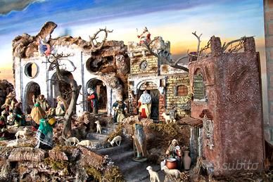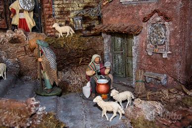 PRESEPE completo di statuine, illuminazione, pannello per sfondo. Si presenta in condizioni ottime, vendo solo perché non ho più lo spazio per gestirlo. Dimensioni: larghezza 1000 mm lunghezza 1720 mm, altezza 1000 mm.
