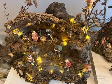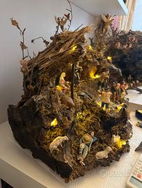 Vendo Presepe napoletano su radice di ulivo con statuine in terracotta dipinte a mano completo di luci misure 60x50