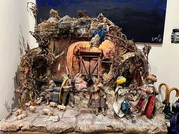Vendiamo Presepe Napoletano realizzato dai Fratelli Capuano a San Gregorio Armeno. Pastori con occhi di vetro. Compreso nel presepe vendiamo: Scatola in legno per riporre tutte le statuine, Tavolo e Il quadro con la notte stellata Ingobro Altezza: 85 cm Lunghezza 1.50 m Profondità: 68 cm Il presepe è possibile visionarlo a San Giorgio a Cremano