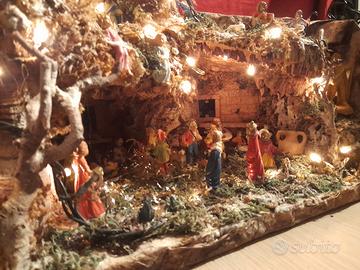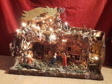 presepe napoletano completo di personaggi e illuminazione misura 40cm x 22cm