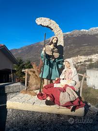 Scenografia presepiale con rudere di arco corredata da bellissima natività alta ben 30 cm, INTERAMENTE VESTITA DI STOFFE!
