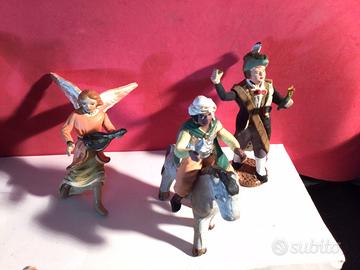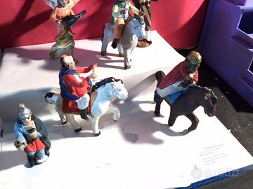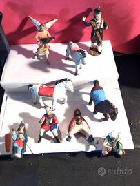 Lotto di pastori vintage, vecchia produzione napoletana anni 60/70 cm 12 con cavallo, angelo cm10. Re Magi quasi naif. Soggetti ormai introvabili