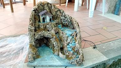Due parti del presepe, larghe 60 e 40 cm, perfettamente conservate e illuminate