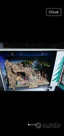Presepe fatto artigianalmente i un elettrodomestico, completo di luce e statuine, vintage