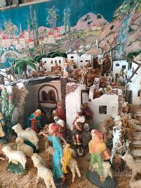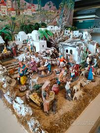 Vendo presepio come da foto con 44 statue più casette, oggetti di paesaggio, luci e acqua. (100cmx62).