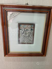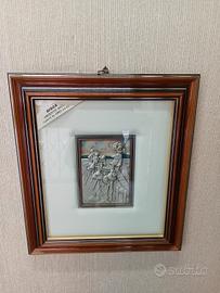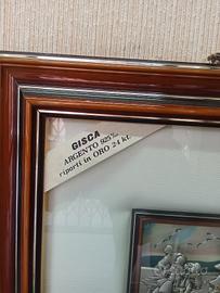 Prestigioso valoroso quadro La Gisca Bassorilievo in Ag925 e riporti in oro 24kt Lavorazione artigianale Cornice in doppio legno sovrapposto lavorato con finitura dorata Certificato di autenticità In scatola confezione originali Foto fedeli Lunghezza 47cm Larghezza 42cm