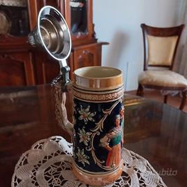 Boccale di birra originale vintage anni 60, handmade in Germania con colori e disegni a rilievo tipici della tradizione, coperchio in metallo, misure: 23cm al coperchio, diametro di base 9cm, in condizioni perfette, vendo euro 40. L'articolo è visionabile a Roma zona eur- fonte meravigliosa, oppure San Felice Circeo. Possibile la spedizione con tutto subito