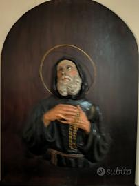 Preziose Sculture Sacre Fine '800 - Cartapesta e Arte Antica Descrizione: Per collezionisti, amanti dell'antiquariato e per l'arredo di cappelle private o chiese, propongo una selezione di rare e affascinanti sculture sacre risalenti alla fine dell'800 e ai primi del '900. Le opere, realizzate con la maestria della scuola di cartapesta (con dettagli in stucco e tessuti pregiati), conservano tutto il fascino della devozione d'epoca. Alcune sono protette da eleganti campane di vetro originali. Elenco dei pezzi disponibili: * Crocifisso Antico: Cristo in croce di raffinata fattura, con dettagli anatomici curati. 600€ * Madonna Addolorata: Vestita con abiti neri ricamati e raggiera metallica, espressione di profondo pathos. 1300 * San Francesco di Paola (o San Charbel): Raffigurato in preghiera con rosario, inserito in una cornice a nicchia lignea. 600€ * Sant'Antonio di Padova: Statua con il Bambino Gesù, arricchita da decorazioni in pizzo e base con putti (sotto campana di vetro).1300 * Santa Martire (Maria Goretti / Filomena /Rosalia /agata /Agnese): Suggestiva scultura giacente con palma del martirio, firmata dal v. Sacchi (datata 1954, stilema classico). arti legno scolpiti 3000 € * San Giuseppe con Bambino: Magnifica composizione scenografica sotto campana di vetro, ricca di fiori e decorazioni in argento e conchiglia.1200 Stato di conservazione: Le opere sono originali dell'epoca. Alcune presentano i segni del tempo che ne attestano l'autenticità e il valore storico (piccole mancanze o crepe naturali della cartapesta). Dettagli: * Epoca: Fine XIX secolo / Inizio XX secolo. * Materiali: Cartapesta, legno, tessuti, vetro soffiato. * Prezzo: Da concordare per singolo pezzo o per l'intero blocco #antiquariato #artesacra #statueantiche #cartapestaleccese #scultureantiche #chiesacattolica #collezionismo #oggettisacri #ottocento #cappelleprivate #madonnaaddorata prezzo trattabile! senza campana sono 300€ in meno. non spedisco con campana per via della fragil
