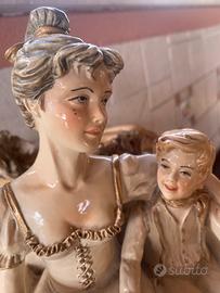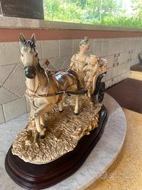 Stupendo Capodimonte cm 50 x 17, dipinto a mano. Cavallo e calesse con su mamma, bambino, cane e ceste di funghi.
