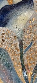 ICONICO, PREZIOSISSIMO, GRANDIOSO.....UNICO Piatto (centrotavola o da appoggio su mobile, appeso su parete etc.) eseguito dai maestri vetrai di Murano con tecnica Mosaico a rilievo con tasselli a rilievo in VERO oro zecchino (vedi foto annuncio). Ogni ricca applicazione (dai fiori alle greche che contornano il piatto, allo sfondo, è a rilievo. Una paziente, sapiente ed IRRIPETIBILE esecuzione artistica! Il piatto presenta dimensioni davvero ragguardevoli. cm. 45 di diametro.....!!!!