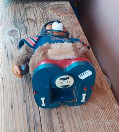 Giocattolo vintage a batterie "Pro Bear" rugby, prodotto da Metro in Taiwan.