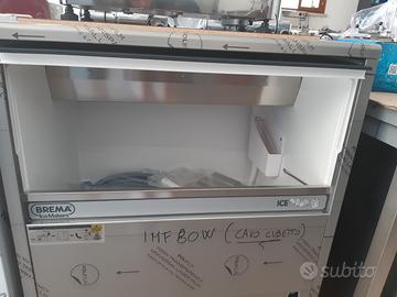 Produttore ghiaccio BREMA mod. IMF 80W a cubetto cavo con produzione giornaliera kg 80 e riserva kg 30 - raffreddamento ad acqua - dimensioni cm 73,5 x 60 prof x 90,7 h (+ piedini regolabili in altezza in acciaio INOX) alimentazione 230 V - potenza assorbita 500 W.