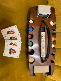 VI INVITO A VEDERLO DA VICINO PEZZO RARO PROFESSIONALE , tutto in legno massiccio lavorato anni 50 completo come da FOTO con fishes e carte da BURRACO Federazione Italiana Burraco, ma naturalmente potrete cambiare le carte all'interno per ulteriori giochi a piacimento; bello elegante per veri professionisti del gioco , da TENERE ESPOSTO IN VARI AMBIENTI studio, sala, ufficio, tavernetta, ecc... porta FISHES e CARTE LUSSO con manico in metallo e pelle misura cm.38 di lunghezza per 18 di altezza per 16 di larghezza. RIPETO è un PEZZO RARO e di GRANDE PROFESSIONALITÀ nonché di VALORE, TENUTO CONSERVATISSIMO CON DEI SEGNI DI VISSUTO MA TENUTO OTTIMAMENTE CONSERVATO ( VEDI FOTO ) Questo pezzo lo cedo COMPLETO COME DA FOTO per EURO 350,00 con consegna a mano solo in zona dove loca l'articolo, oppure si può spedire con più euro 12,00 a vostro carico per spedizione TRACCIABILE con corriere di Poste Italiane, MASSIMA SERIETÀ DA PARTE MIA, grazie.