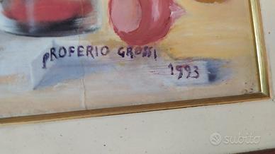 olio su tavola 50x70+ cornice firmato in fronte con data,," Mature morte con frutta e lampada " ben tenuto da collezione privata senza certificazioni,cedo visto e piaciuto