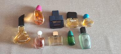 9 profumi in miniatura, per uomo e donna,varie firme importanti,condizioni buone visto gli anni che hanno,mai usati ,si vende per cambio arredamento,erano tenute in una vetrina.No spedizione.Tutti e nove 18,00 euro, singolarmente 5 euro.