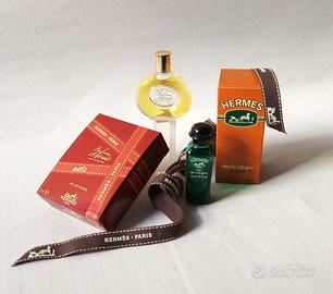 Due mignon d’epoca. Parfum D’Hermès E d T è una fragranza del gruppo Chypre Floral da donna, lanciato sul mercato nel 1984. Eau de Cologne Hermès, è una fragranza del gruppo Aromatic Fruity unisex, ed è stato lanciato sul mercato nel 1953. Condizioni perfette come ogni articolo della nostra collezione. Accessori di presentazione non compresi.