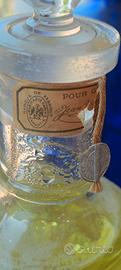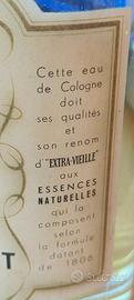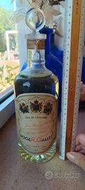 Falso da vetrina della colonia" Jean Marie Farina" della casa Roger & Gallet. È un flacone da 1000ml di vetro di acqua colorata con tappo in vetro e ancora col suo sigillo originale. Fragranza creata con aromi naturale nel 1806, fu una delle prime. La bottiglia risale ai fini degli anni'50 con etichetta dai colori vissuti del suo tempo. Col tappo misura cm 27