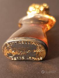 Raro profumo mignon BOTTICELLIANA by SCHIAPARELLI - Eau de Parfum 5 ml (anno 1982) – senza scatola Profumo gioiello a pendente con la sua catena d'oro (mancante). La boccetta è a forma di busto femminile coronata da un tappo splendidamente fiorito e placcata in oro; ha una base in argento massiccio dorato con oro zecchino, numerato e provvisto di punzone. Questa è una RARA edizione speciale del profumo “Shocking You” (creato nel 1977) da Elsa Schiaparelli ed è firmata alla base “Botticelliana Schiaparelli Serge Lepage”, a differenza della più comune versione Shocking You Schiaparelli Paris (che non ha la base in argento). La boccetta proviene da una collezione privata ed è stata realizzata più di trent'anni fa, per cui la fragranza potrebbe aver subito un cambiamento di intensità. Le immagini fanno parte della descrizione si prega di guardarle con attenzione.