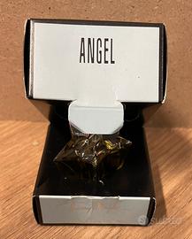 Il profumo nell'immagine è la miniatura da 4 ml di Angel Etoile Collection di Thierry Mugler. Questa versione specifica è un'edizione vintage dell'iconica fragranza Eau de Parfum, lanciata originariamente nel 1992. Il flacone si distingue per il design in vetro sfaccettato a forma di stella e un tappo argentato anch'esso a forma di stella. Caratteristiche Principali: Nome: Angel - Etoile Collection. Formato: Miniatura da 4 ml (0.14 fl. oz.). Tipo: Eau de Parfum (EDP). Fragranza: Appartiene al gruppo Orientale Vanigliato, con note che spaziano dal bergamotto e mandarino a note più dolci come il frutto della passione e la vaniglia. Questa miniatura è molto ricercata dai collezionisti di profumi vintage
