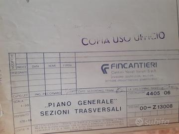Copie autentiche ad uso lavori e uffici tecnici del progetto per la costruzione dei sommergili T 650 Pelosi s522 varato 23 luglio 1986 e Pirini s 523 varato il 14 dicembre 1987. Il progetto Fincantieri è realizzato su tre piani con rispettive misure cm 160x41 , 160x30 , 160x48 nella visione longitudinale trasversale ed orizzontale. A parte il valore storico da collezione l progetti incorniciati diventano dei preziosi ed unici oggetti di arredo per importanti uffici, aziende commerciali e abitazioni a tema.