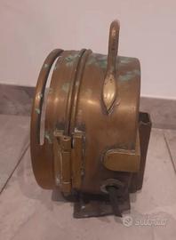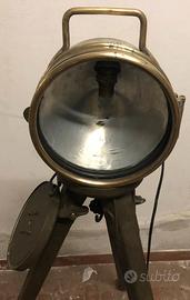 Proiettore navale tipo panerai, ottone massiccio, non una riproduzione ma proveniente da recupero navale, installato su treppiede militare originale in legno e metallo, idea regalo natale, compleanno, laurea