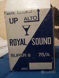 Vendo Proiettore Super 8 Royal Sound 75/A vintage anni '70. Oggetto in condizioni estetiche Eccellenti, non testato e quindi vendo come non funzionante. Completo di scatola originale, bobina ricevente e cavo di alimentazione.