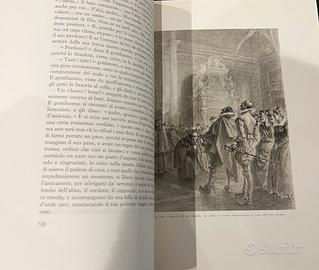 PROMESSI SPOSI Milano, 1949–1950 Raffinata edizione del secondo dopoguerra del celebre romanzo di Alessandro Manzoni, arricchita da un importante apparato illustrativo realizzato dal noto illustratore italiano Gustavino. L’opera rappresenta una delle più eleganti reinterpretazioni editoriali del capolavoro manzoniano, concepita come omaggio alla tradizione letteraria italiana e alla sua diffusione nel Novecento. Caratteristiche principali • Volume completo • Edizione milanese 1949–1950 • Circa 150 illustrazioni di Gustavino • Riproduzioni in fotolitografia a tre toni • Firma autografa dell’illustratore presente • Impaginazione elegante e di gusto moderno Rilevanza artistica Gustavino è riconosciuto come uno dei più importanti illustratori italiani del XX secolo. In questa edizione, la sua interpretazione visiva accompagna il testo con coerenza stilistica ed equilibrio narrativo, elevando l’opera a esempio significativo di arte editoriale italiana. Stato di conservazione Esemplare ben conservato. Pagine interne integre e leggibili. Firma presente e ben visibile. Condizioni generali coerenti con l’epoca di pubblicazione. OPERA RARISSIMA DI GRAN VALORE STORICO ED ARTISTICO .. L’OPERA VISTA L’IMPORTANZA DOVRÀ ESSERE RITIRATA A MANO
