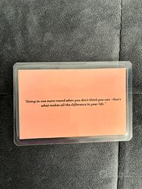 Tessera da collezione dedicata al grande pugile di Philadelphia interpretato da Sylvester Stallone, dall’aspetto di una tipica licenza da boxeur vintage americana. Sul retro un’aforisma del personaggio. Stampata su carta fotografica e laminata. Pezzo da collezione immancabile per i veri fan della saga cinematografica.