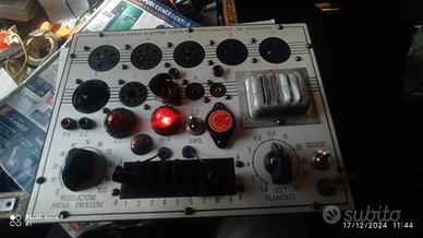 Raro Prova valvole ad emissione con ponticelli della scuola radio elettra Torino anni 1960.Da testare.non so se funziona o no....posso dire solo che si accende una spia rossa centrale.Chassis e pannello frontale integri.Disponibile altro prova valvole a levette e molte vecchie valvole