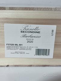 Importante cassetta originale in legno contenente 6 bottiglie di Prunotto “Secondine” Barbaresco DOCG – annata 2020, uno dei cru più rappresentativi della denominazione Barbaresco.
