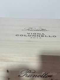 Prestigiosa cassa originale contenente 6 bottiglie di Prunotto Barolo Riserva Bussia “Vigna Colonnello” 2019, una delle espressioni più eleganti e longeve del Barolo.