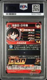 Carta gradata PSA 10 GEM MT di Son Goku: Shounenki (codice carta UM10-012) dalla serie Super Dragon Ball Heroes Universe Mission 10 del 2019. Condizioni: Perfette, come certificate dal grado PSA 10. La carta è protetta nella sua custodia originale sigillata. Lingua: Giapponese. Autenticità: 100% garantita. Il numero di certificazione PSA è visibile in foto (123377950) e verificabile sul sito ufficiale PSA. La carta verrà imballata con la massima cura per garantirne l'integrità durante il trasporto. Per qualsiasi domanda o ulteriore foto, non esitare a contattarmi tramite messaggio.