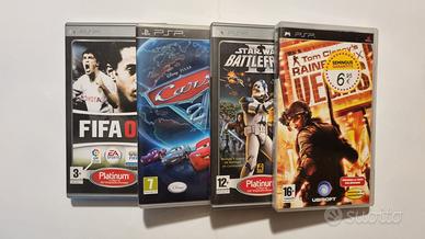 In omaggio i seguenti 4 giochi: Fifa 07, Tom Clancy's Rainbow Six Vegas, Cars 2 e Star Wars Battlefront II, tutti completi di manuale e disco UMD.