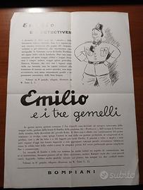 Volantino pubblicitario casa editrice Bompiani, prima uscita edizione italiana del libro Mery Poppins, dicembre 1935. Sul retro: pubblicità uscite libri per bambini Erich Kastner della serie "Emilio".