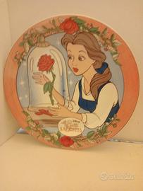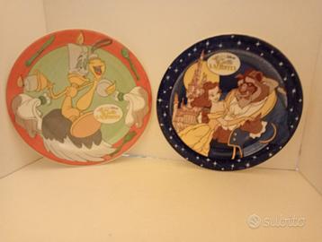 4 piatti Disney in ceramica con immagini del film La bella e la Bestia serie limitata per la Miralanza.