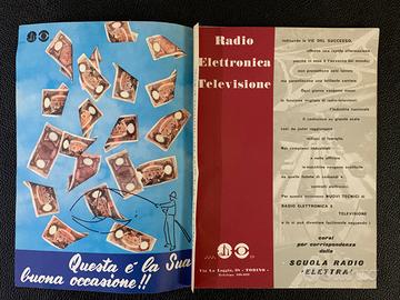 Per collezionisti/amatori. Rarissimo opuscolo pubblicitario composto da 52 pagine a colori della famosa scuola per corrispondenza di Torino con il previsto modulo numerato di richiedesta d'iscrizione ad uno dei 3 corsi proposti: Radio elettronica, Tv e Radiostrumenti. Tantissime belle foto esplicative dei vari progetti effettuabili. Ottime condizioni; per vendita con spedizione, formula “visto e piaciuto” come da foro allegate all'annuncio.