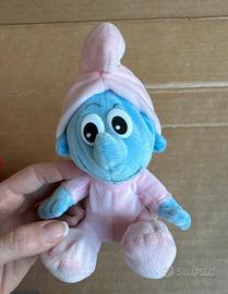 Grande Puffo + Baby Puffo Piccoli peluches vintage come da foto